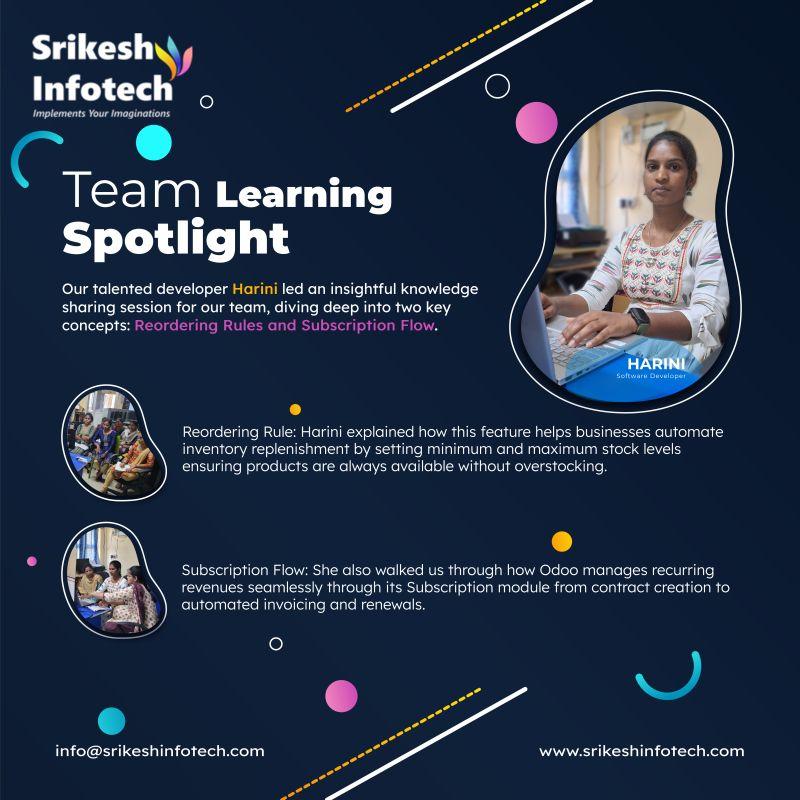 Our talented developer Harini led an insightful knowledge sharing session for our team, focusing on two key Odoo ERP concepts of Reordering Rules and Subscription Flow.
